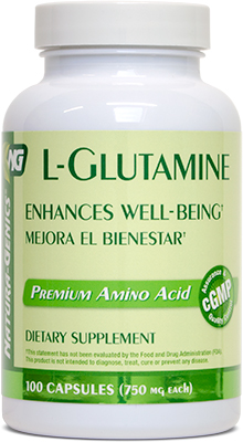 La glutamina se convierte en glucosa cuando el organismo necesita más glucosa como fuente de energía. La glutamina sirve como fuente de energía para las células que recubren los intestinos. También, la glutamina es utilizada por los glóbulos blancos para la actividad inmunológica.