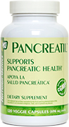 Pancreatil™ es una combinación de enzimas digestivas (amilasa, lipasa, proteasa, celulasa y alfa galactosidasa), vitaminas y el aminoácido L-metionina. Este producto ha sido formulado para facilitar el proceso de digestión y en cierta forma para asistir al funcionamiento del páncreas. El aminoacido L-metionina ayuda con el metabolismo de los lípidos manteniendo al hígado y páncreas saludables.