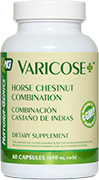 Varicose+™ es una combinación de 12 compuestos entre ellos vitaminas, hierbas y extractos de hierbas formulado para apoyar la vitalidad de las venas. El extracto de castaño de indias es considerado uno de los ingredientes principales en este suplemento. Este extracto ha sido estudiado extensamente debido a su gran efectividad en casos de insuficiencia venosa crónica (mal funcionamiento de las válvulas de las venas de la piernas). Esta condición conduce al desarrollo de várices, dolor, hinchazón de tobillos, picazón y calambres nocturnos en las piernas. |